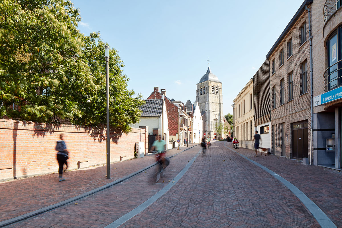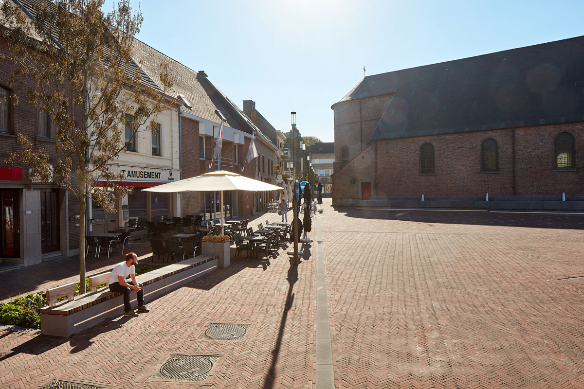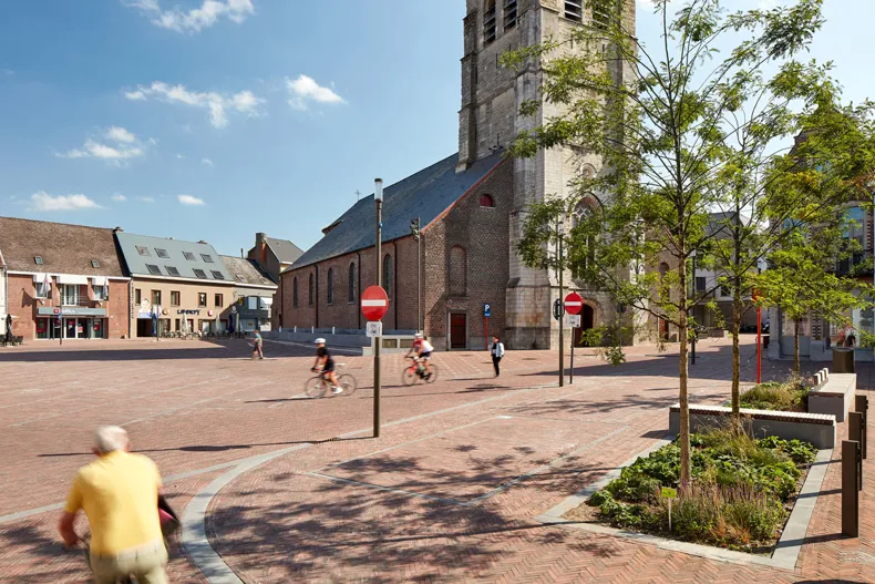 Until recently, traffic infrastructure dominated the centre of Brakel. On one side of the church was a busy street and on the other side, a large asphalted car park. The result: conflict between the traffic function and the residential function in a town centre full of shops, schools and eateries. A wide variety of street furniture, materials, obstacles and ad hoc solutions only led to further fragmentation of the limited space. The construction of a bypass that would relieve the street in the centre of through traffic provided the perfect opportunity to create a new traffic-calmed and attractive centre.