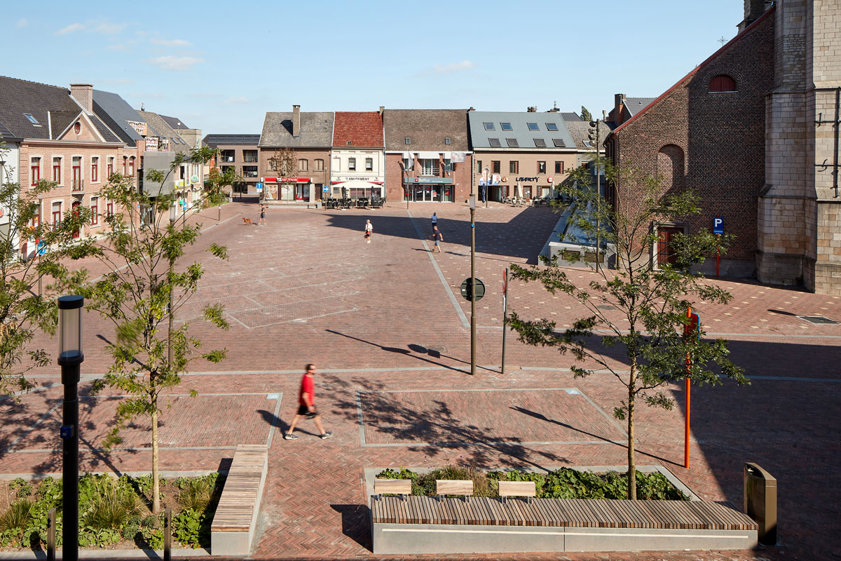 Each corner of the Marktplein was given its own character by choosing three different species of trees: Tilia europea ‘Euchlora’ (Caucasian Lime), Fraxinus angustifolia ‘Raywood’ (Narrow-leaved Ash) and the American Sweetgum. In the spring, the trees give off a wonderful fragrance which pervades the square. They have a long life expectancy and are highly resistant in an ‘urban’ context.