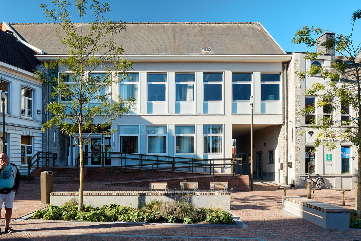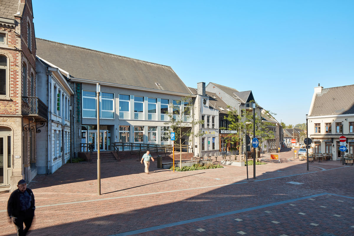 Various meeting places were created in the Markt, each including a number of benches combined with a planted area, trees and bicycle parking facilities. The positions chosen mark the most important functions around the Markt such as the town hall, the library and the bus stop. On the other hand, these areas break up the uniform whole and in each case, the trees serve as markers which are visible from the adjacent streets. The ‘green’ of the Markt is clearly visible from a distance.
