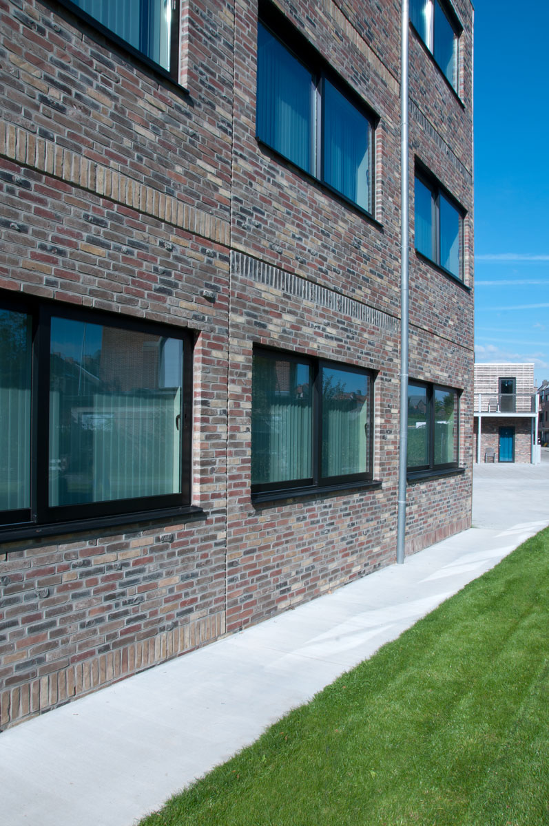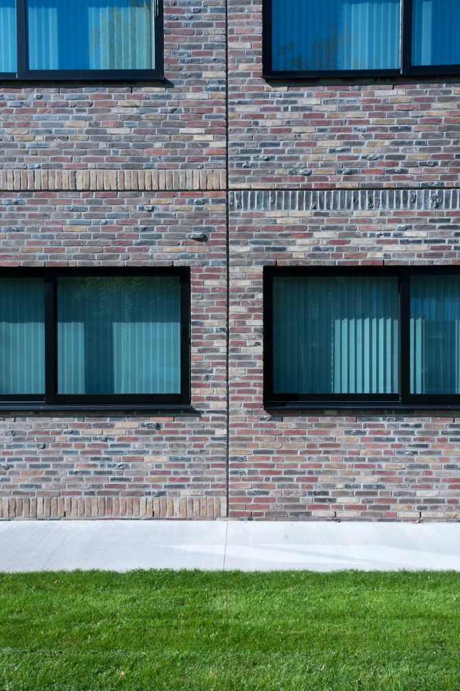 In addition, a joint pattern was used for the facades in order to create ‘sections’. The joints for these sections were accentuated and a soldier course was included, placed alternately at the top and bottom of each section.