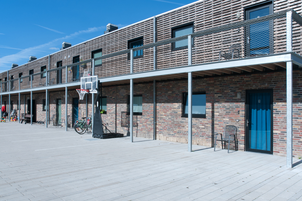 The project lies in the middle of a block in the Conforta district and consists of a passive crèche, an underground car park and seven passive homes with a large roof terrace and four compact smaller homes.