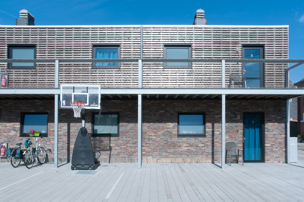 The mix of subtly shaded Nature7 facing bricks used for the facade structure naturally disguises the rationality behind the planning of the building. However, a regular pattern is maintained by using a different colour from the range of bricks for each of the stretcher courses and offset by the irregular wood-clad facades.