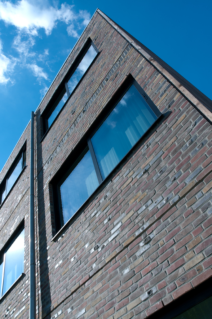 Finally, the windows were offset slightly in relation to each other. Their black colour in combination with the subtle shades of the Hand-made facing bricks emphasises this effect.
