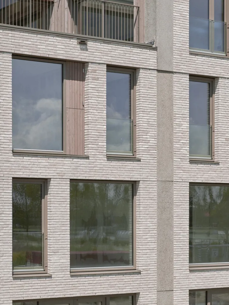 “We were looking for a fresh, light-coloured brick that goes well with the other materials of the design”, clarifies Ard Hoksbergen. “The facing brick provides a soft appearance and strengthens the natural image of the ensemble. It adds to the warm, welcoming atmosphere.”