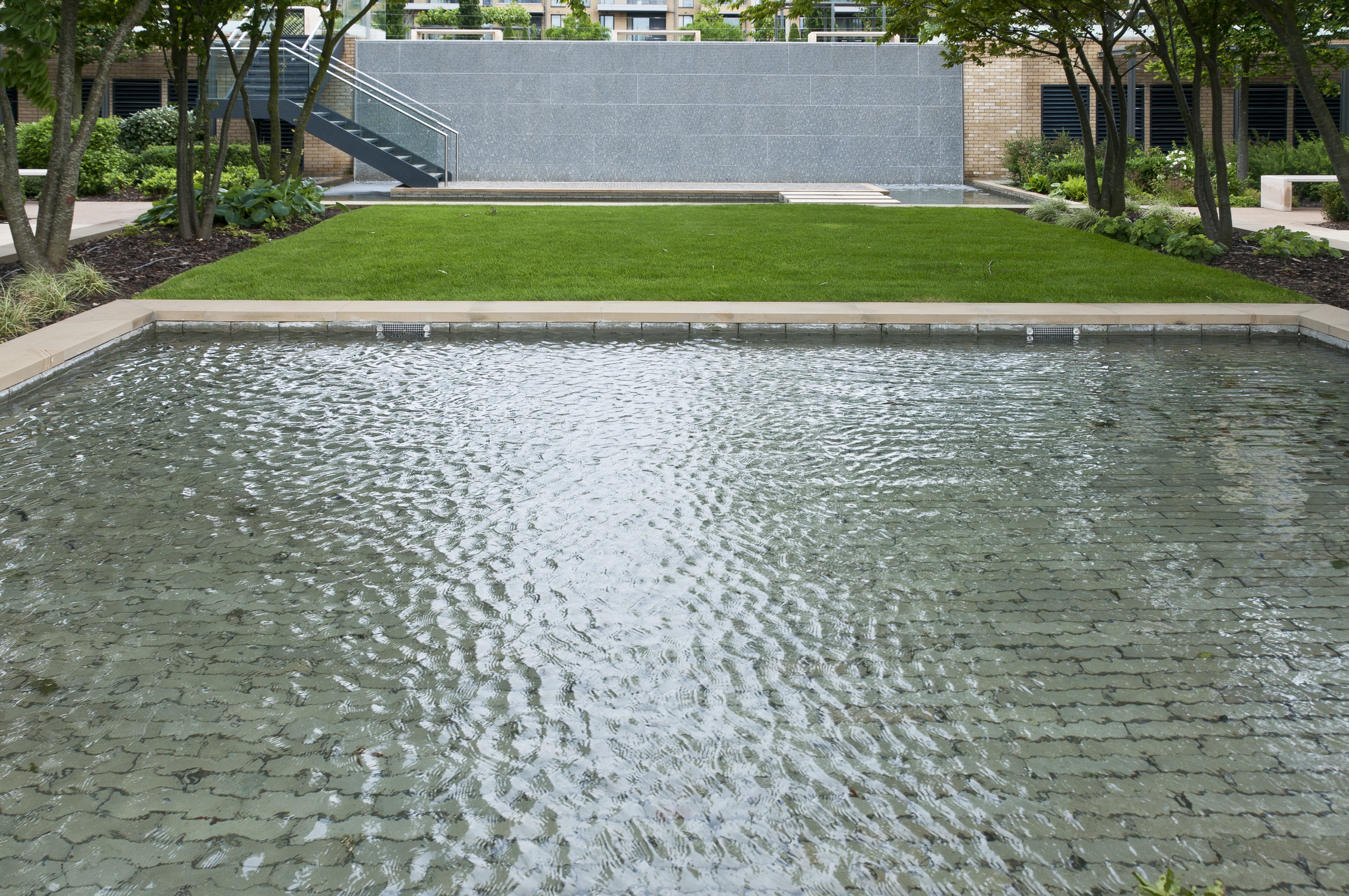 The multi-award-winning gardens at the centre of the development provide residents with a tranquil retreat where they can sit and relax. The concept is based on a series of various interlinked gardens on different levels, leading down towards the Thames.