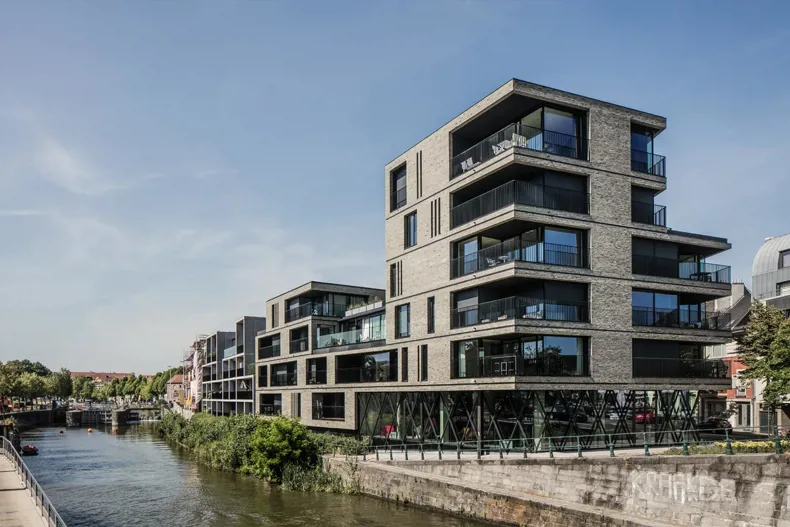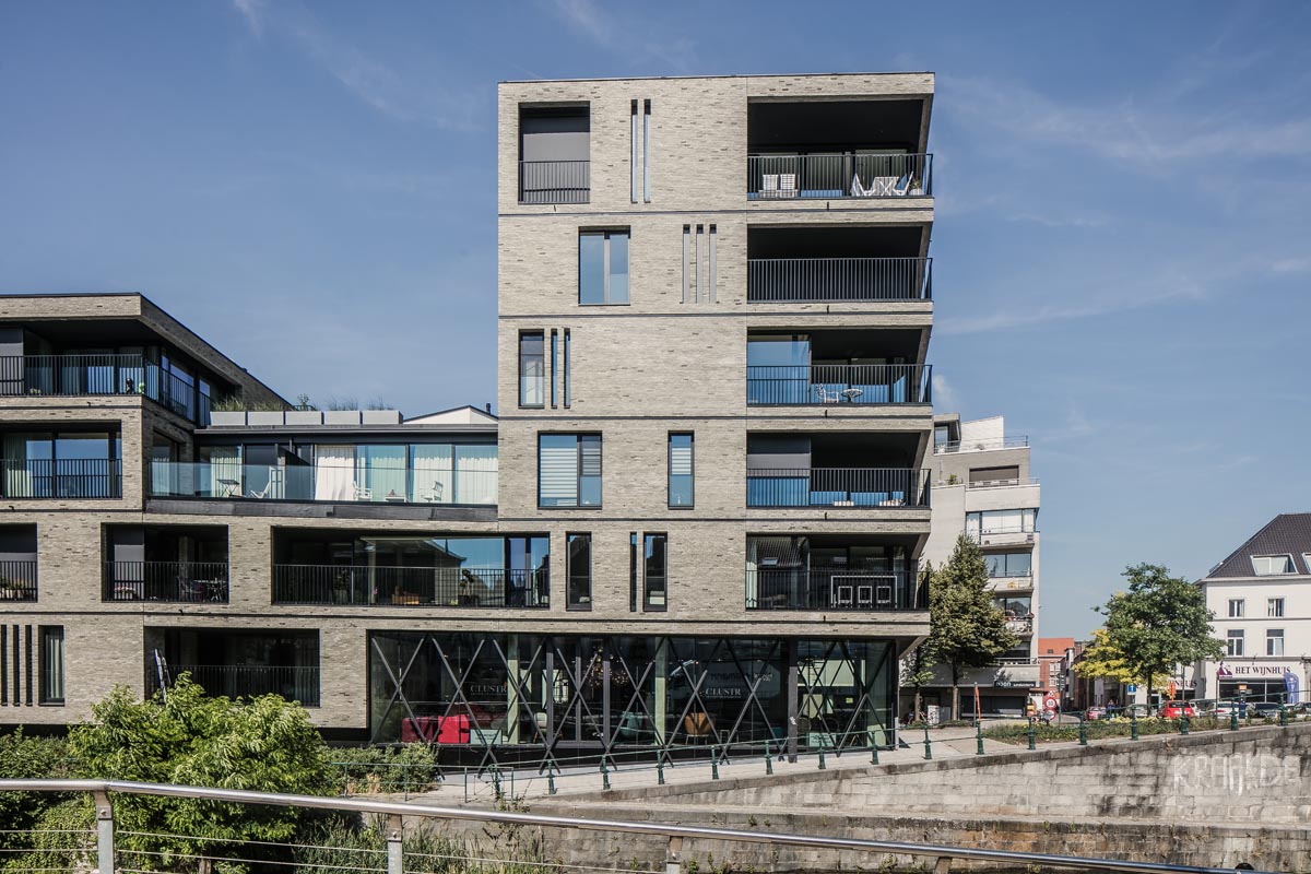The Joremaaie project is located in Ghent city centre. It is the second project that CAAN architecten have carried out at this site for Lafaut Invest. The first project (Leiezicht Apartment Building) is located right next to this one. The third and latest project (Bord de Lys Apartment Building) is located a bit further along the street. The various projects are bordered by the river Lys and the Reke towpath along the western side.