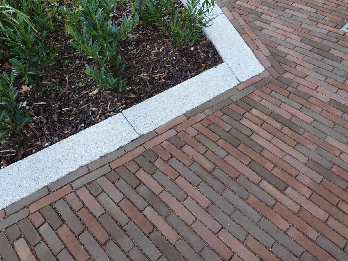 Two different methods of flexible construction using the Septima Terrestre clay paver was designed by Ares Landscape Architects. The traditional method of laying clay pavers laid on a sharp sand bed with fine dried silica sand to fill the joints provided an impermeable surface which was constructed alongside a permeable surface which consisted of coarse graded aggregate as a bedding and jointing medium.