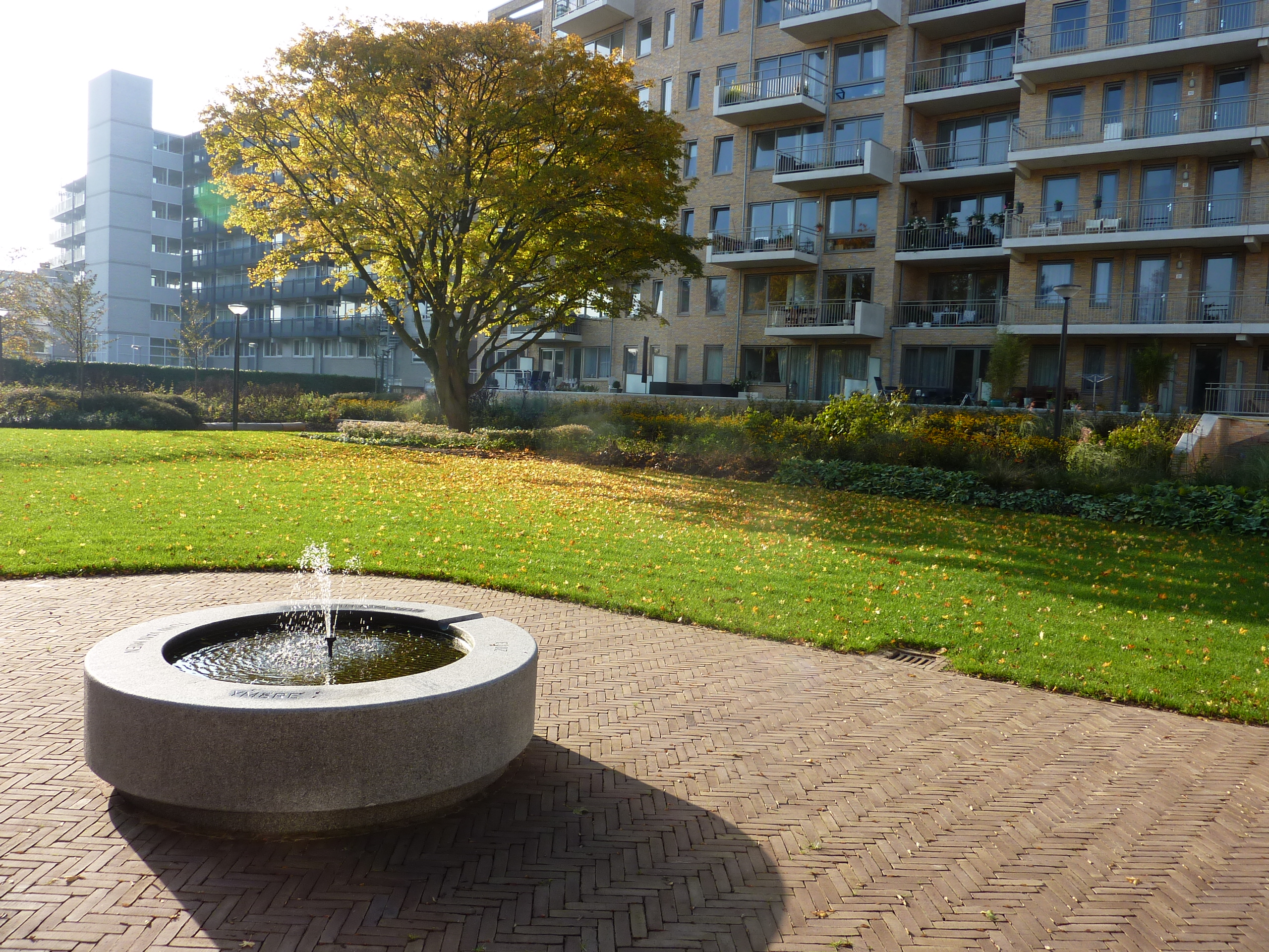 On the garden side there is therefore a stepped profile including various 'reed gardens' to gradually bridge the height difference. The stairwell that encompasses the height difference merges into the beautiful design and is made of granite blocks.