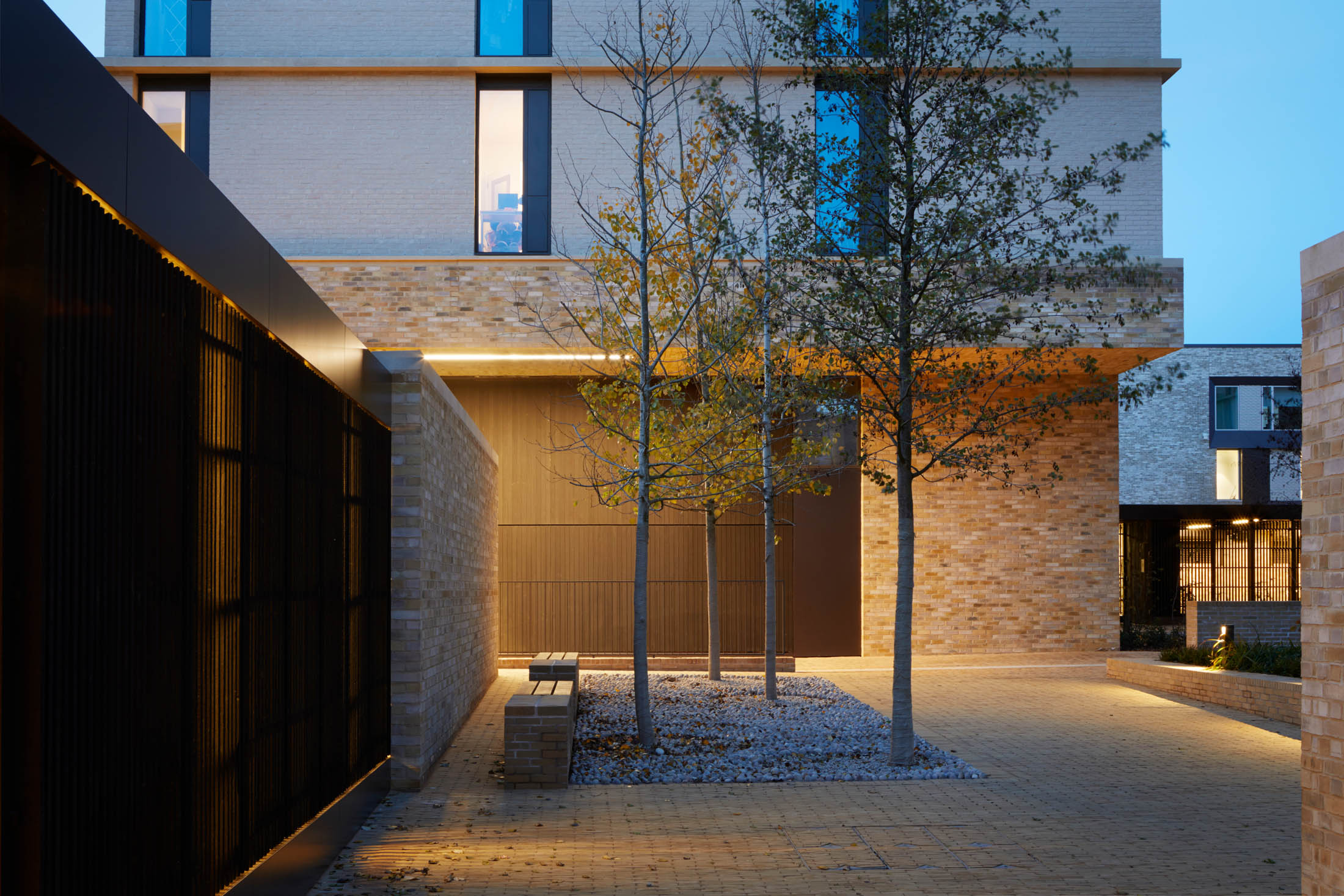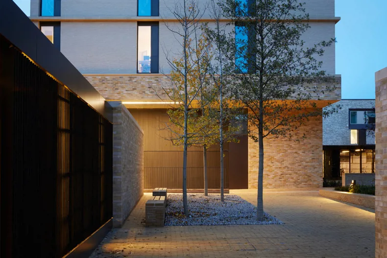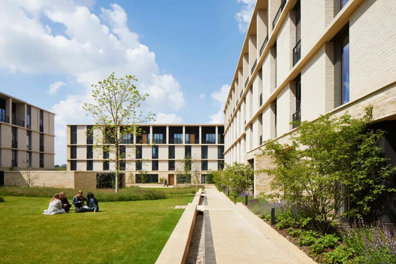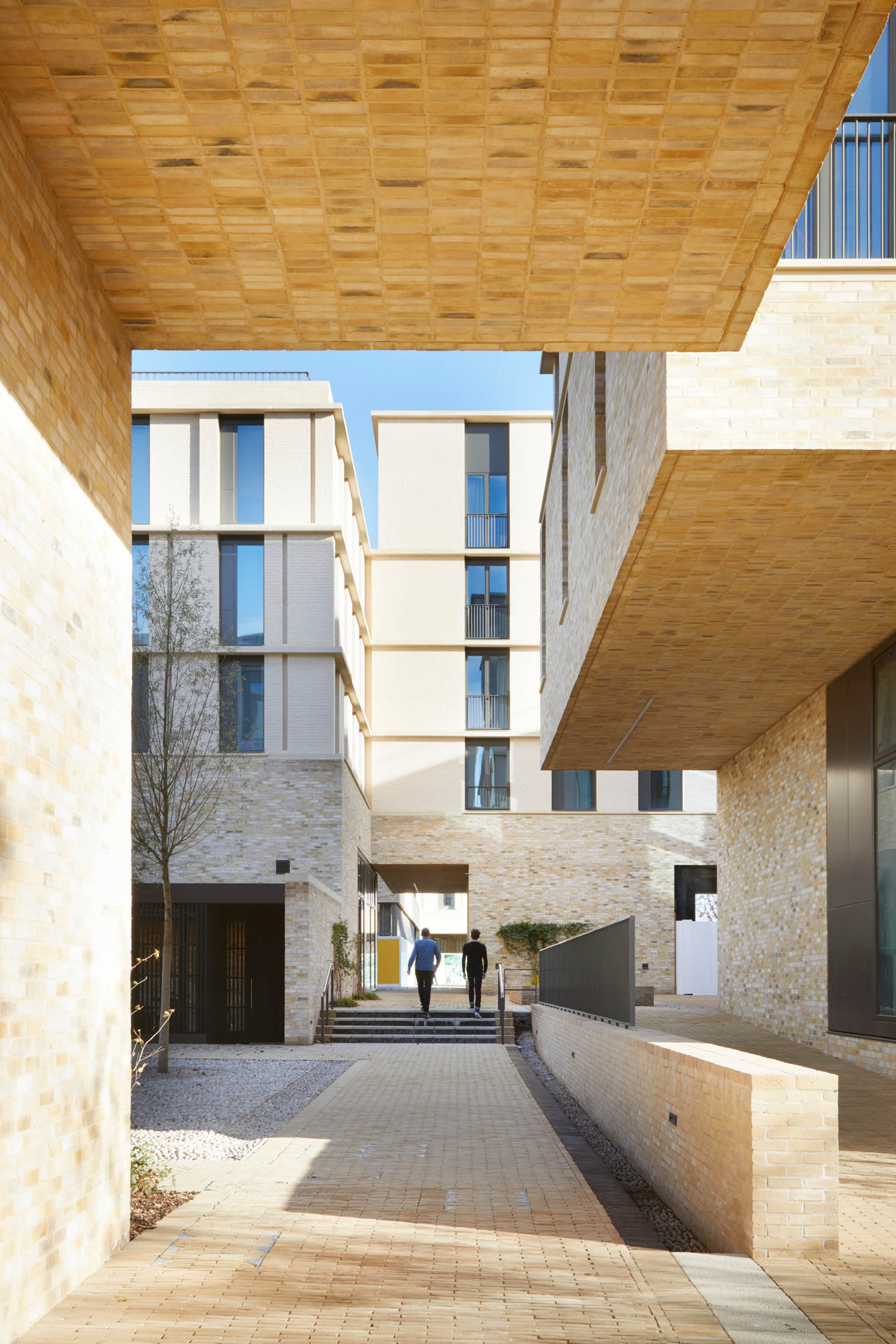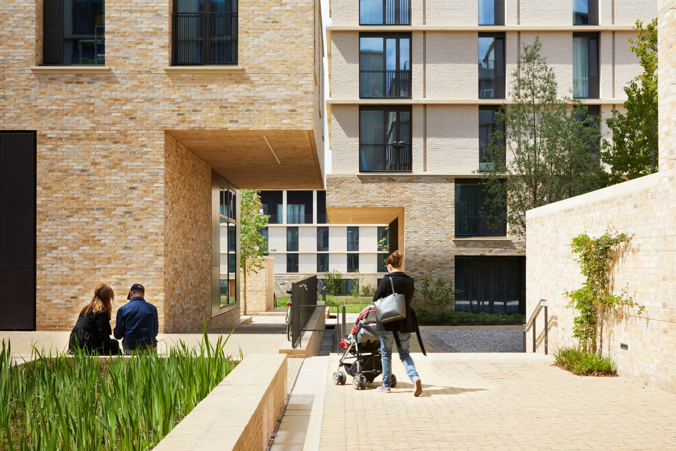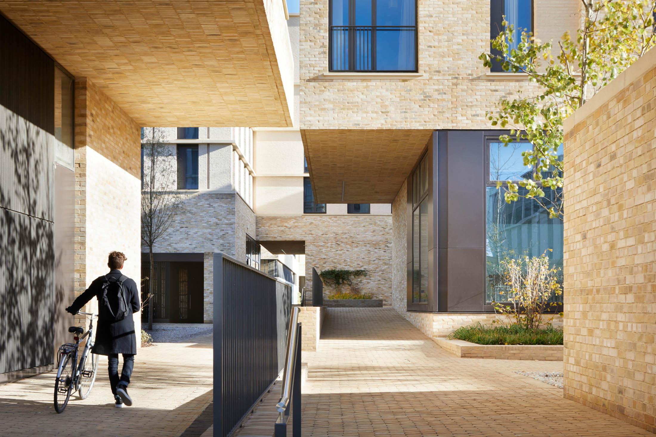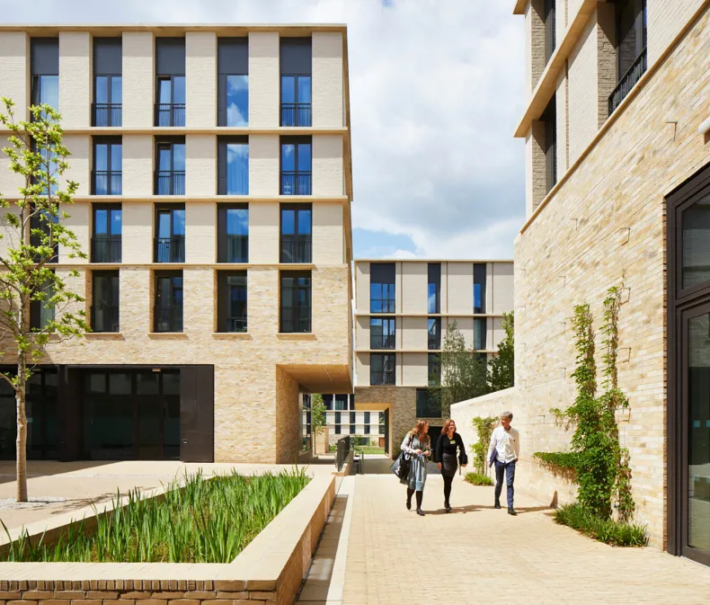 A network of courts and squares, framed by the 10 new buildings, creates a transition from the life of the city into the heart of a new community. These varied interconnected spaces form a social landscape, recalling the differentiated spaces of the traditional city and the historic collegiate spaces of central Cambridge. They differ in scale and function, moving from the large, urban and public Market Square, through to the semi-public Landscape Court.