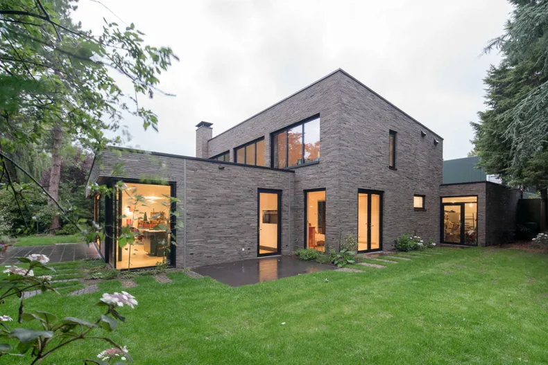 The whole villa is surrounded by greenery and consists in turn of three interconnected volumes, each of a different size and individually oriented within the garden. The legibility of this form and cautiousness regarding the spot where it stands have been emphasised by cladding the house in a single material: the green-grey facing brick infinitum 6013.