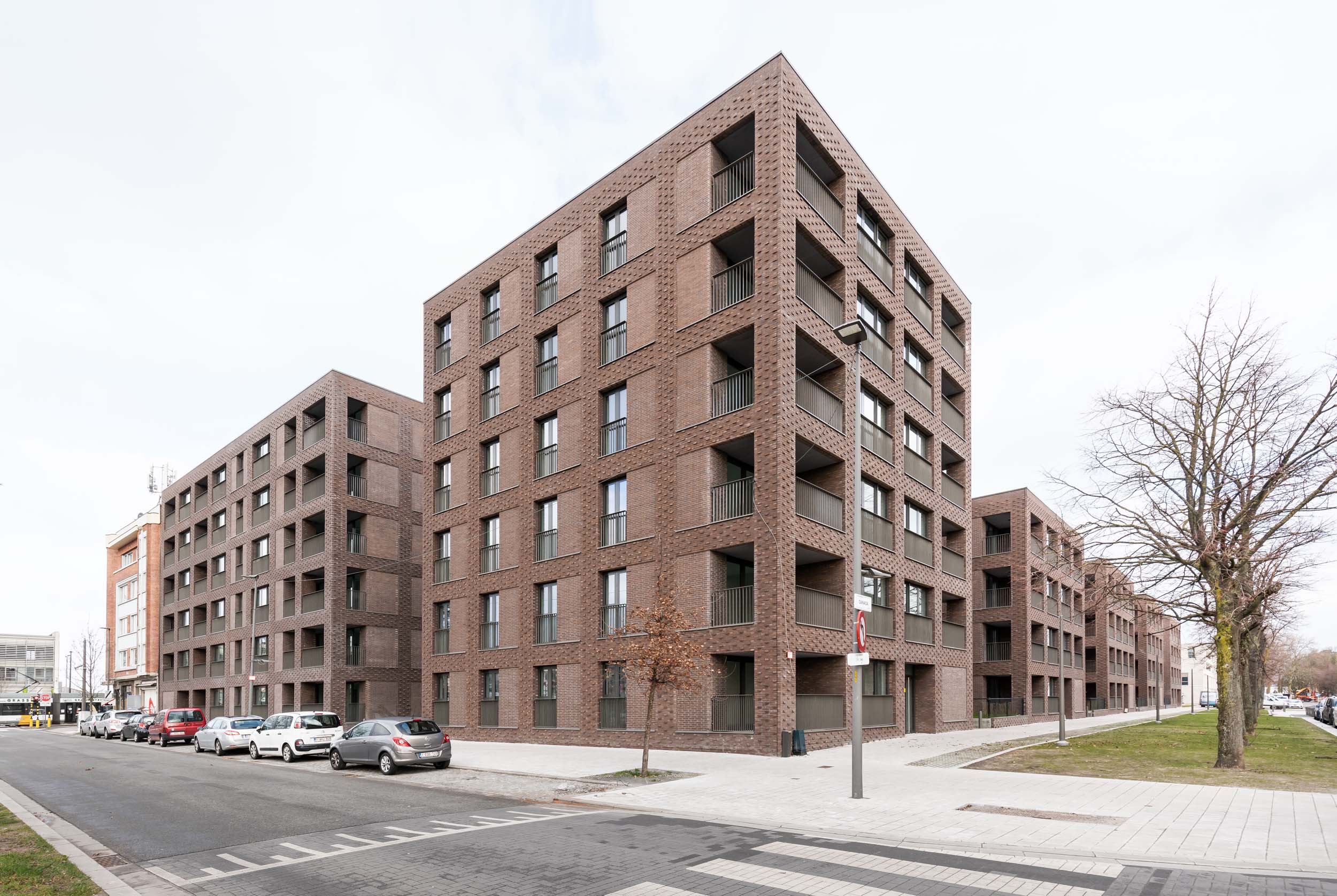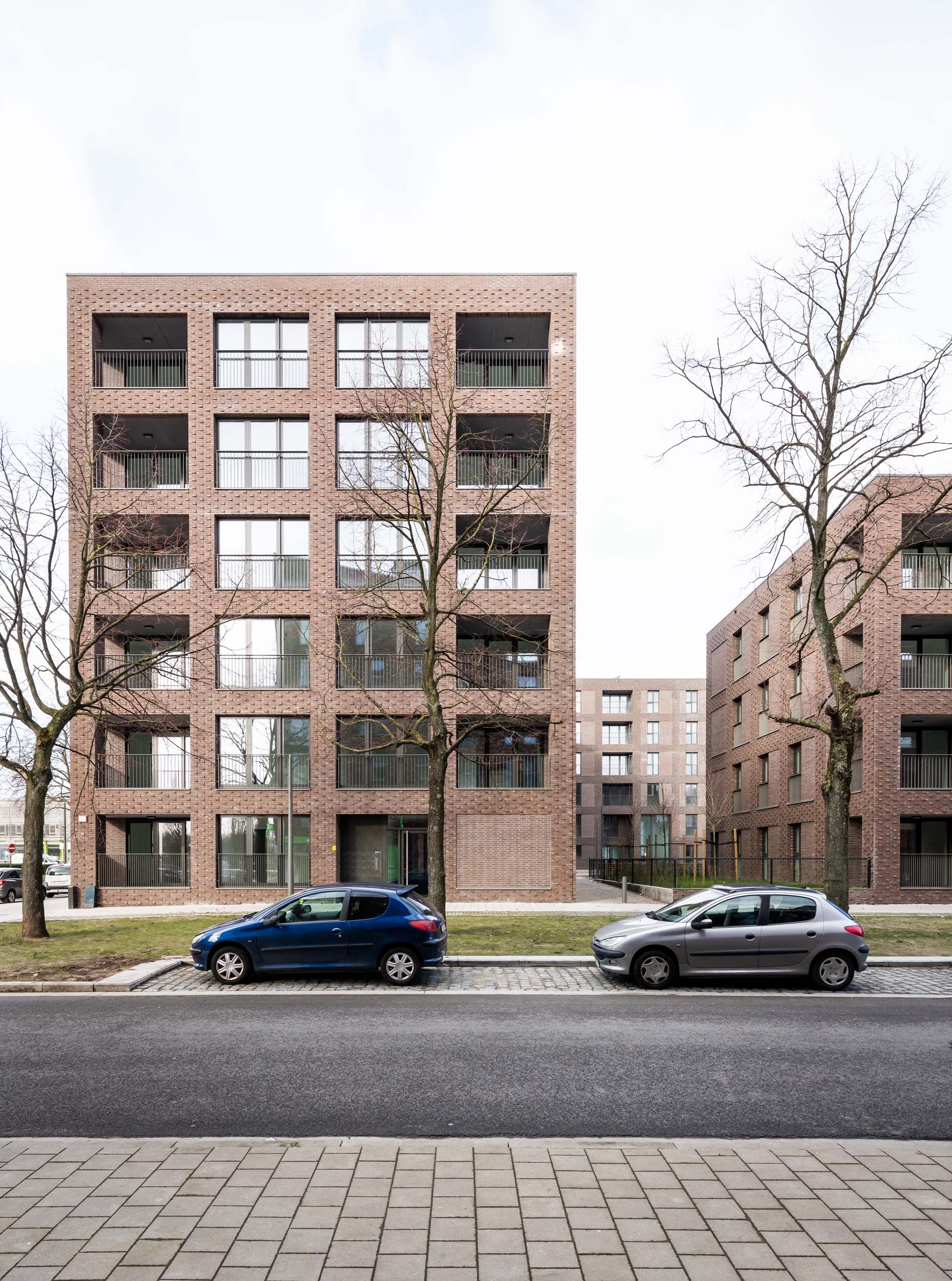 The environs of the Luchtbal district in Antwerp is characterised by its enormous diversity. The open urban plan dates back to the modernist past and incorporates both typical garden suburbs and classic closed housing blocks. Even more variation is added to the image by the presence of large industrial buildings on the opposite side of Noorderlaan. All these aspects have been incorporated in the design of LUCA II which fits in perfectly with its context. The construction project consists of single blocked volumes, designed in accordance with the principles of a garden suburb. In addition, each individual building is a subtle nod to its immediate surroundings. The volumetry of the whole project was conceived as a composition with one long six-storey volume on Noorderlaan and with several smaller volumes ranging from four to six floors along Canadalaan and Manchesterlaan. In this way, the urban design concept carefully brings together the different worlds of the Luchtbal district.