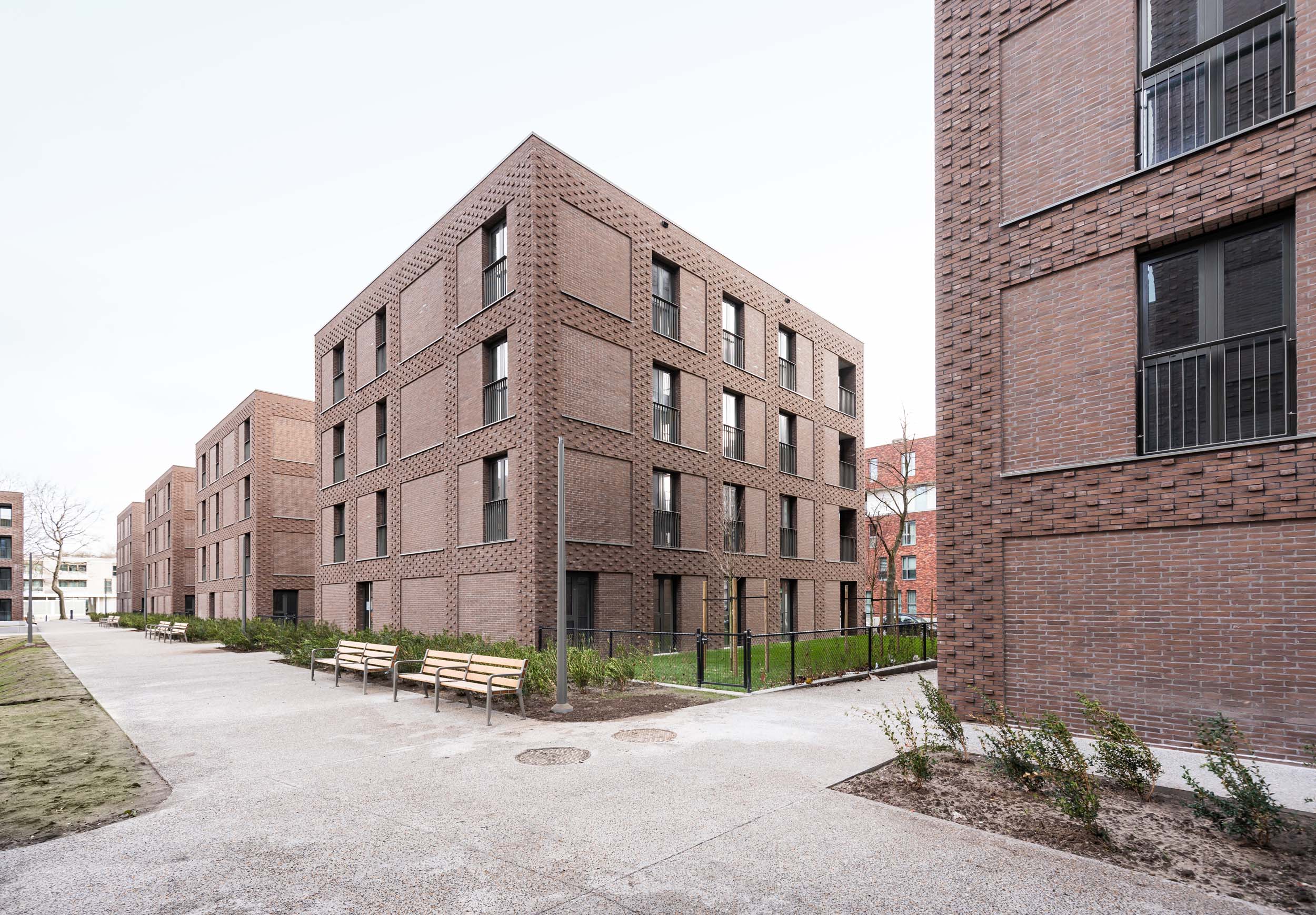 The Luchtbal district of Antwerp recently gained a special construction project. LUCA II accommodates 118 social rental housing apartments spread over eight homogeneous blocks. The most distinctive feature: the brickwork with its repetitive pattern, boldly articulating the façades. The design was produced by B-architecten in collaboration with the Slovenian bureau Bevk Perovic Arhitekti.