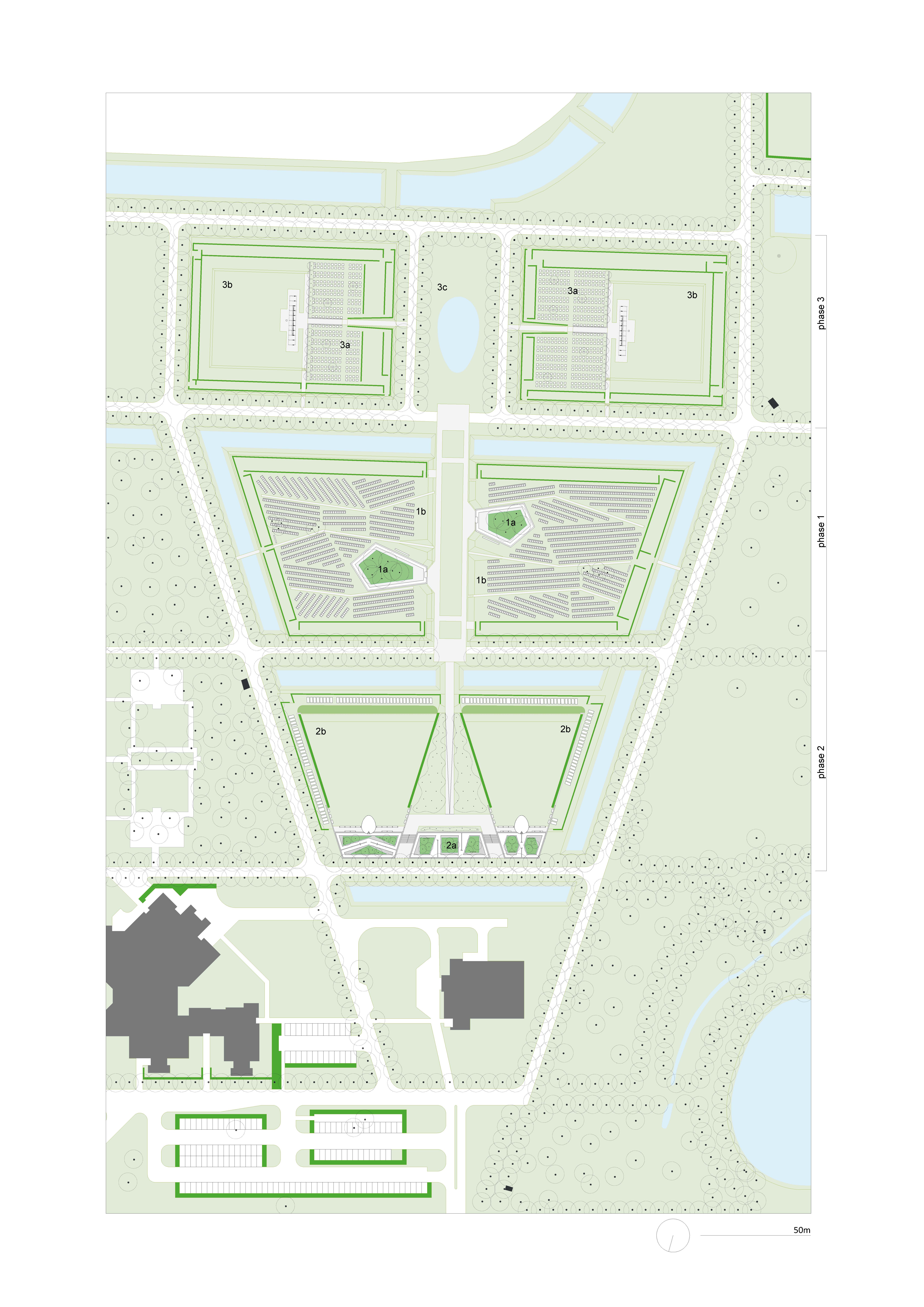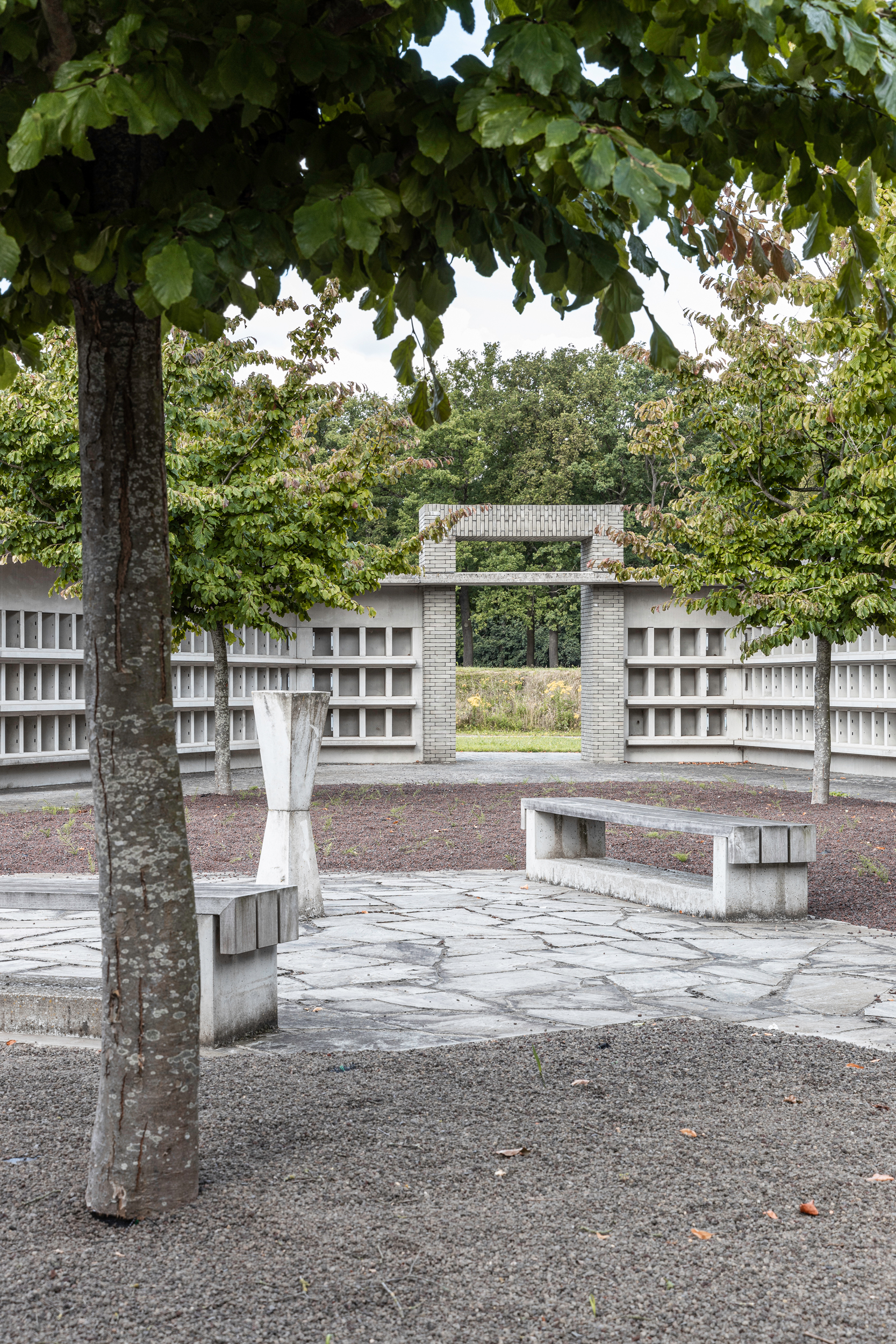 The interplay between the introversion of the rooms and the openness of the landscape works extremely well. Filling the centre of the patios with shade-loving flowering plants certainly makes the inside and outside merge together. In that respect, you can say that there is a certain homeliness. The ideal height of the walls, combined with the concrete subdivisions for the urns which reduce the impact of the volume, produces a strong but calming architecture at the same time. The light, shadows and colours of the foliage have both a calming effect and a reviving effect on the feeling of absence. One thing is for sure: the new area for scattering ashes at Schoonselhof meets all the special requirements of such sanctuaries. It is a place where people can both experience nostalgia and find peace.