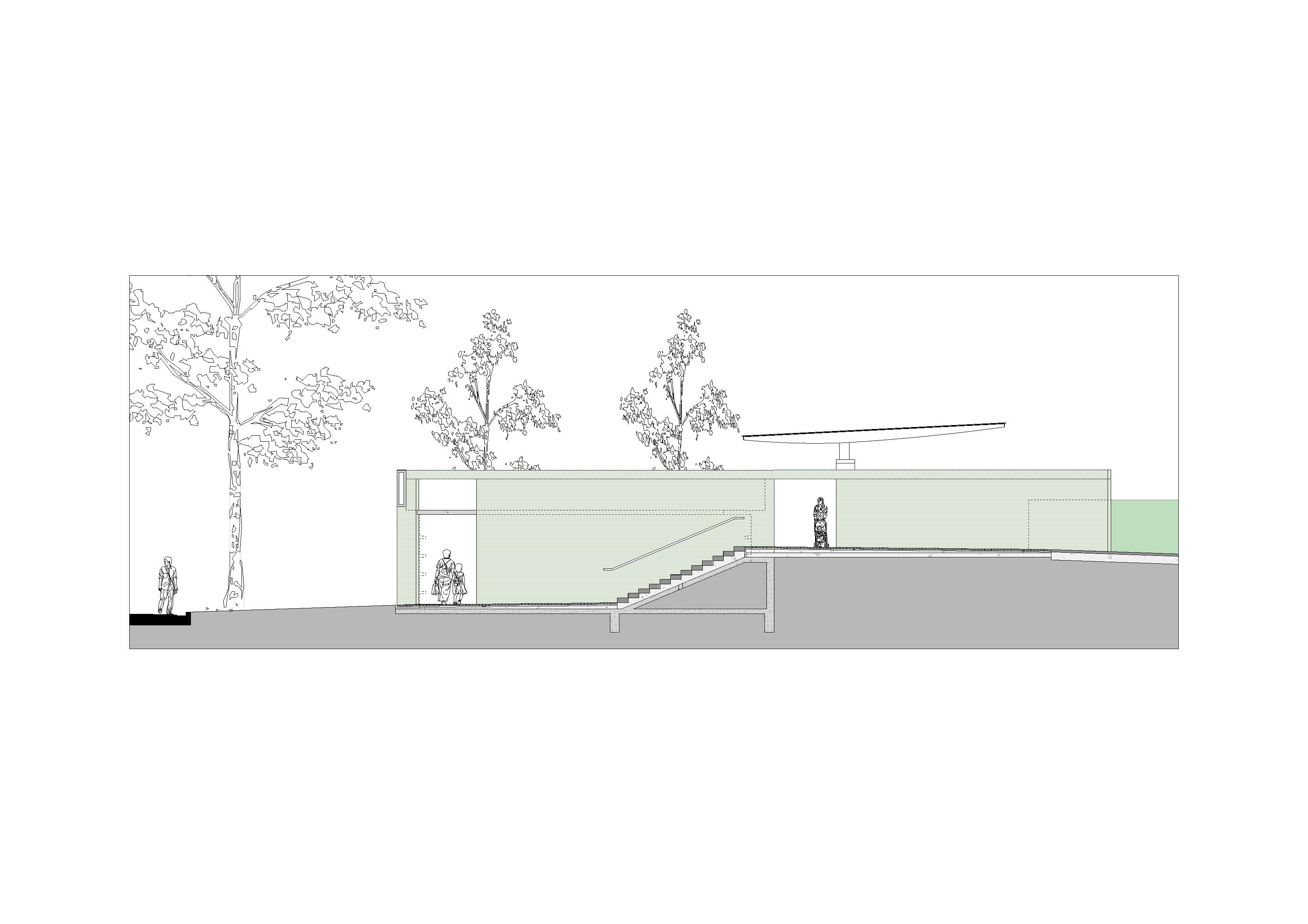 Two raised scattering meadows are buffered by a retaining wall with a large columbarium. The architect also made use of the gently sloping site to subtly incorporate two slightly raised urn fields in the design. In addition, 2 new columbariums were half-recessed in an embankment, thus ensuring that the expanse of the landscape remained virtually intact and creating intimate outside rooms.