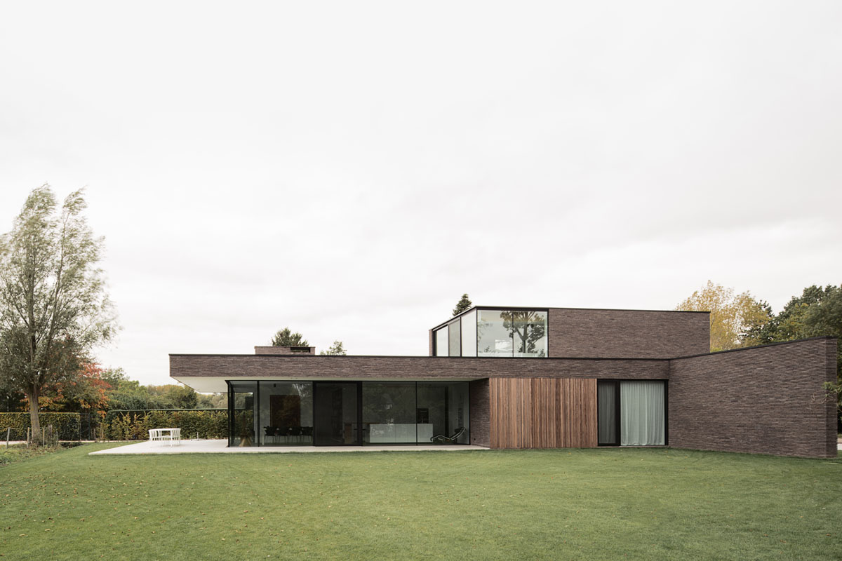This elegant villa is situated in the Latemse Meersen nature reserve, in the green suburbs of Ghent along the right bank of the Lys. The task was to design a house which provided the best possible view of the beautiful nature reserve in the south.