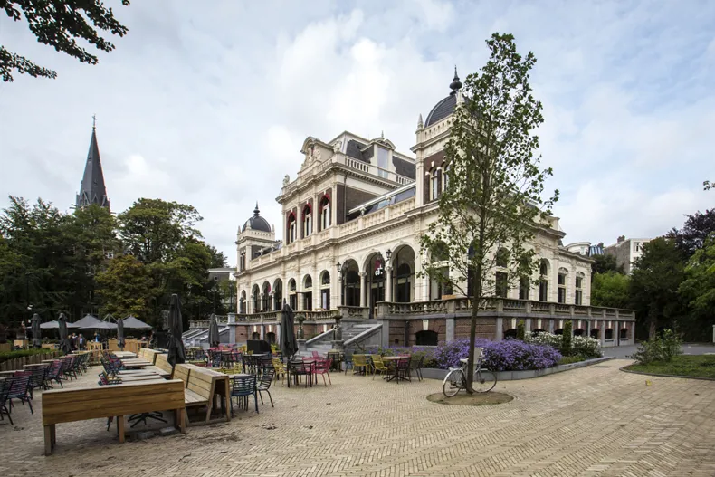 When you walk from the Vondelpark across the terrace and into the VondelCS, you are crossing the threshold from a public space to a private space. The area outside the VondelCS has been designed in such a way that this cross-over becomes clear in a natural way and as a result, the area succeeds in its role as a semi-public “transition space”.