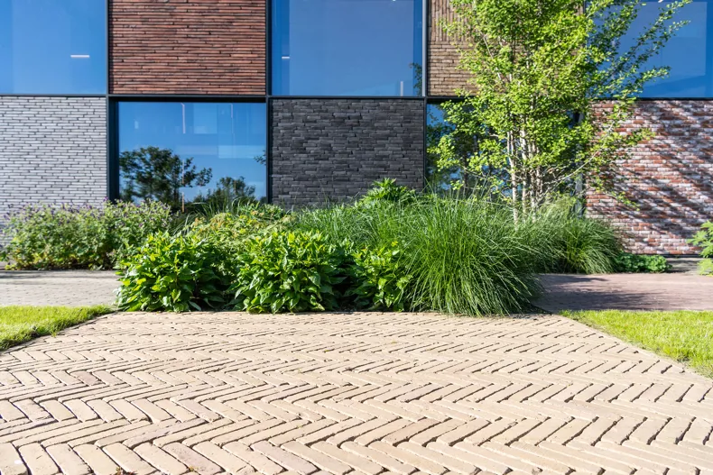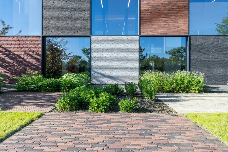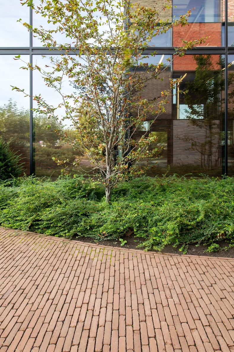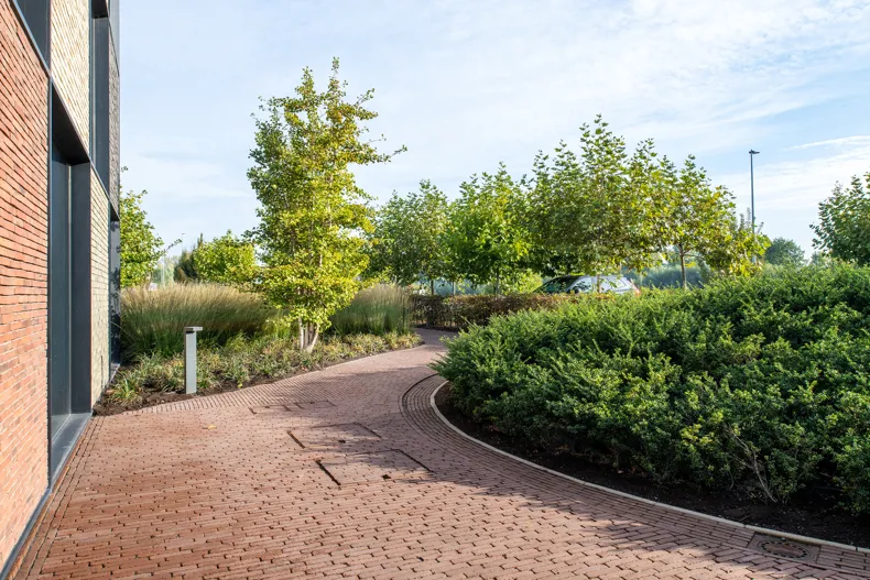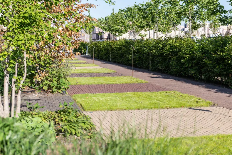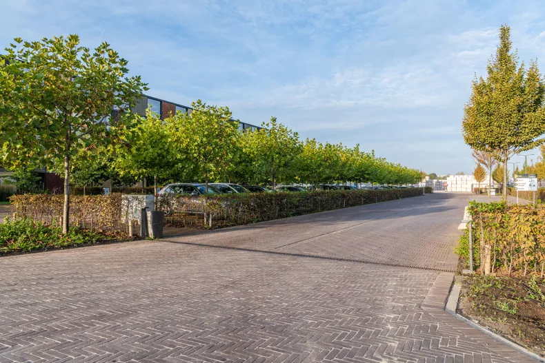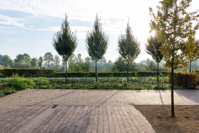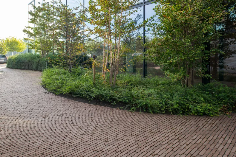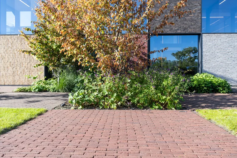 A circular principle was also applied to the parking areas, where milled clay pavers were laid on top of a water-permeable construction: a circular application for clay pavers which can no longer be reused as such. Therefore in principle, a clay paver never needs to end up as construction waste.