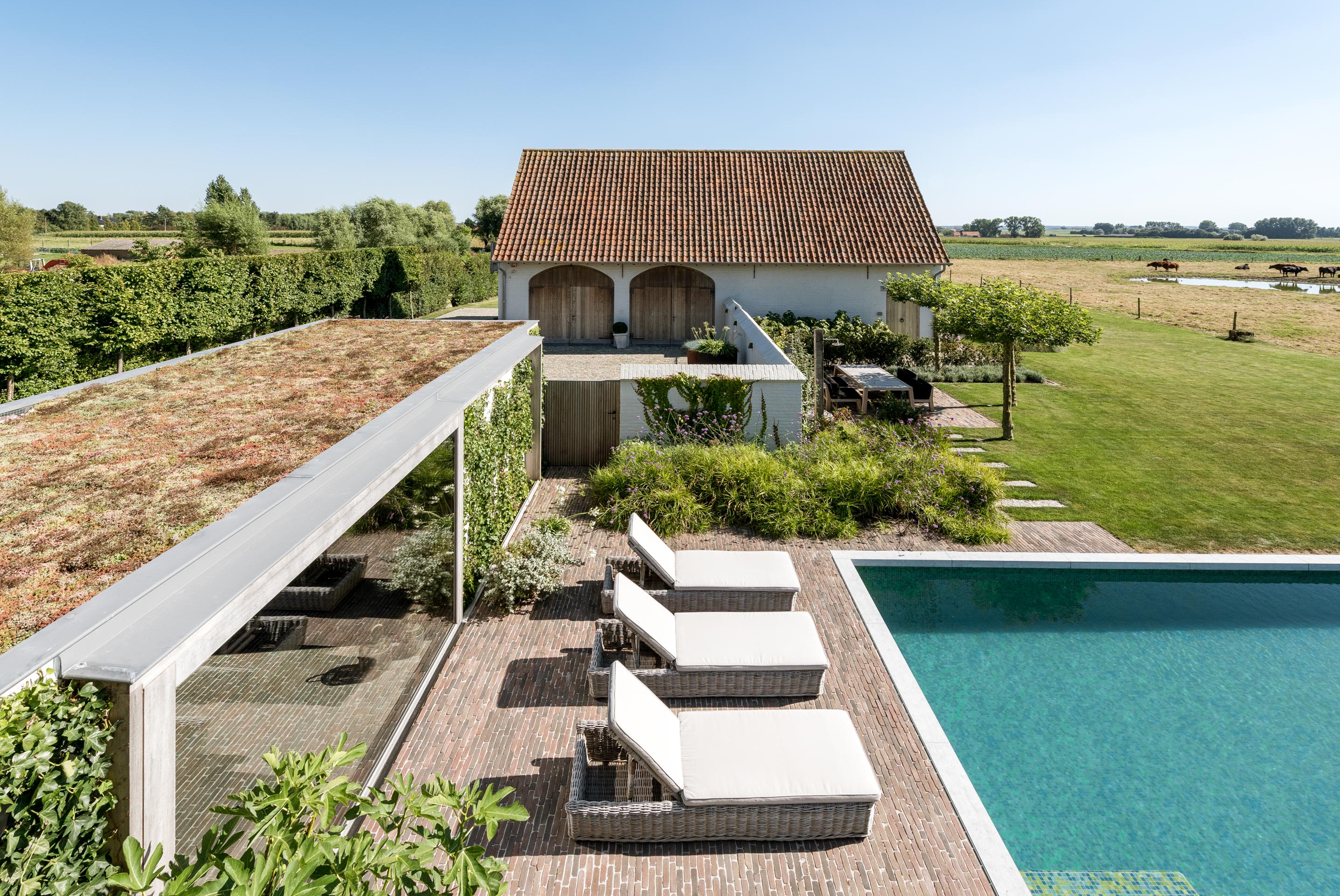 Gianni De Clercq from Green Concepts was given the briefing to design a garden which the owners could enjoy all year round. In the midst of all the hustle and bustle there should be a functional and low-maintenance area, combining the traditional character with some modern elements.