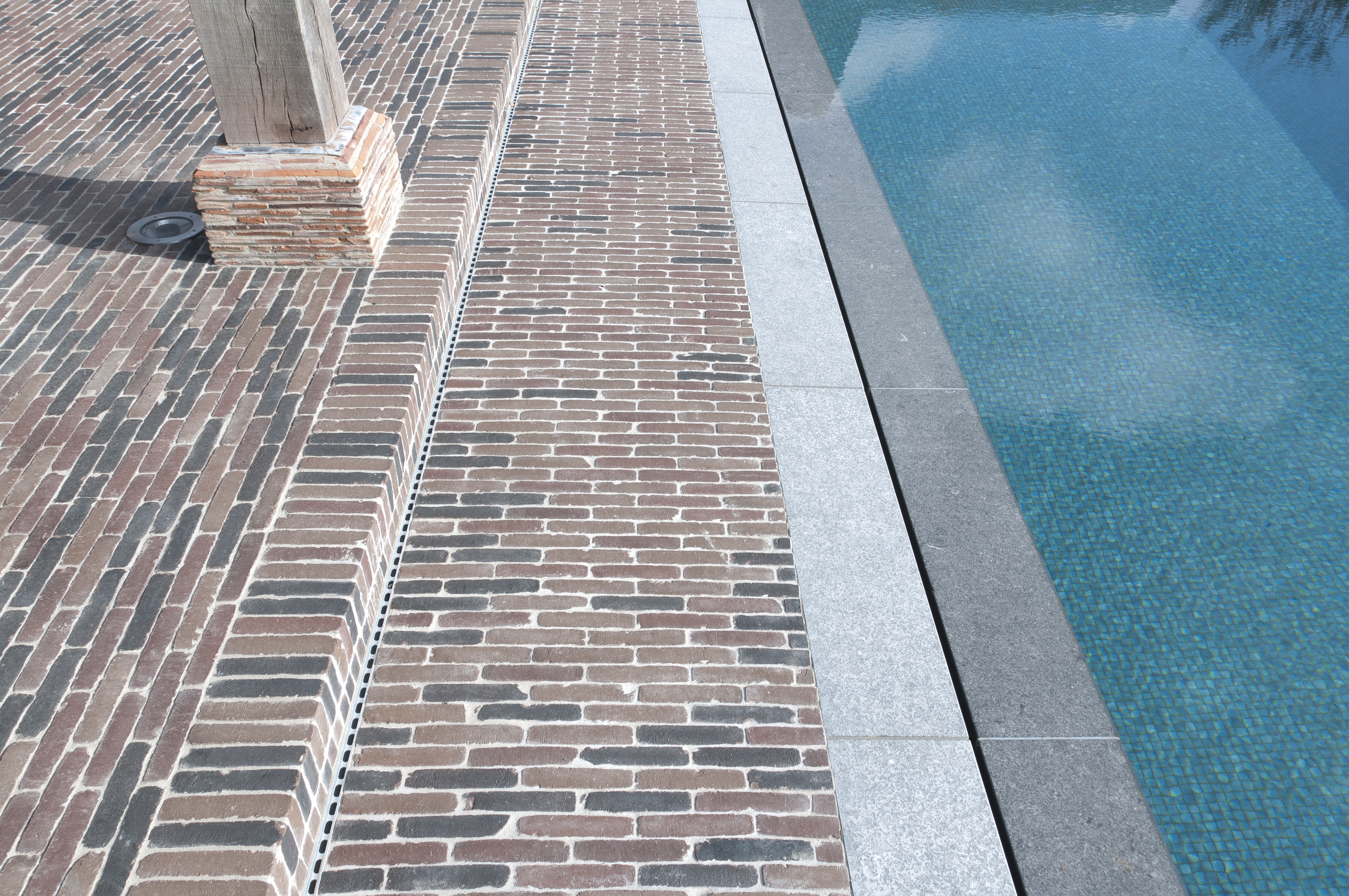 A minimum slope of 1 to 2% is recommended. The water should always run away from the building. If the water is collected by a (slotted) gulley, then that gulley is to be cleaned out thoroughly at least once a year in order to ensure that proper drainage is maintained.