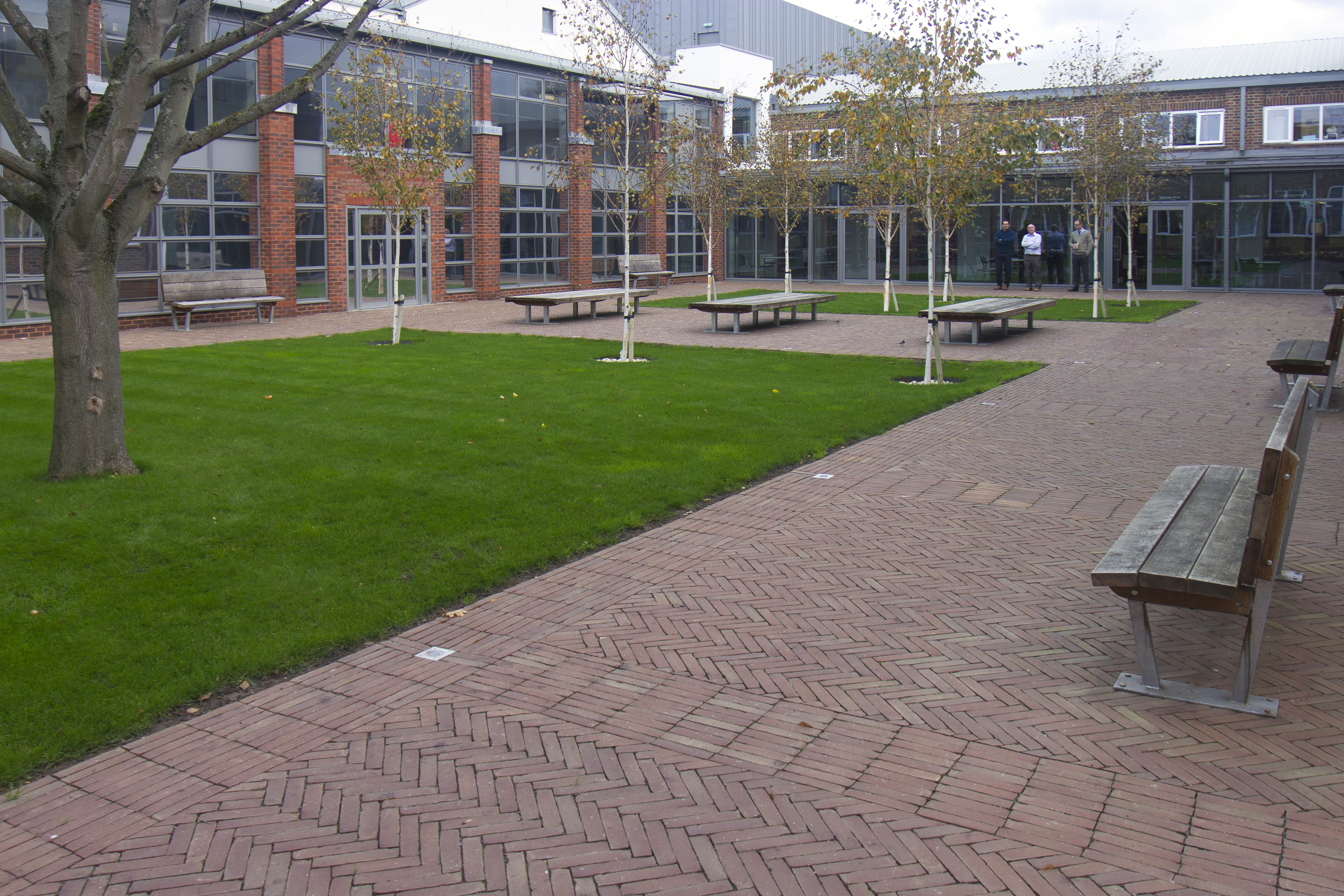 During vibration, a rubber mat is placed underneath the vibration plate in order to prevent damage to the clay pavers. However if any clay pavers are damaged, they are to be replaced immediately and uneven areas are to be levelled out. When vibrating the clay pavers, you should always start from the edges and work towards the centre.