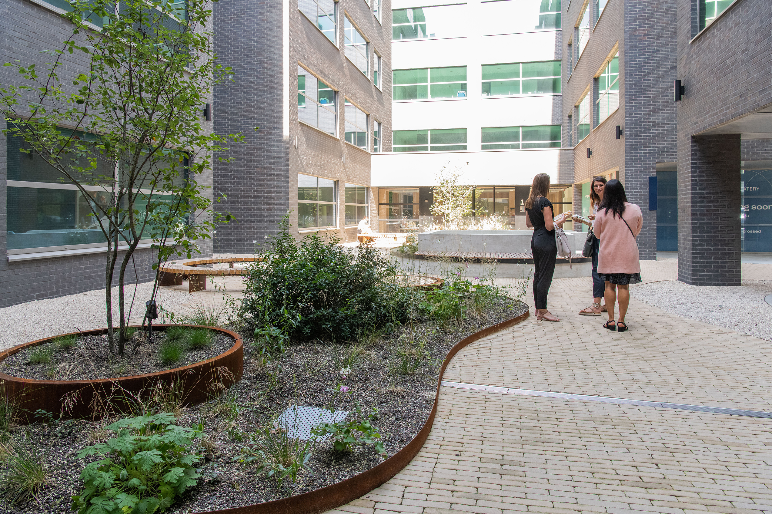 This beautifully designed residential garden in Belsize Park, London, balances functionality, aesthetics, and ecological sustainability. Sitting nearly two metres above the lower ground floor and more than a metre below the raised ground floor of the house, the garden posed a unique design challenge. The project required integrating a lawn for the clients’ young children, a seating area in the sunniest part of the garden, a vegetable bed, ample storage, and lush planting.