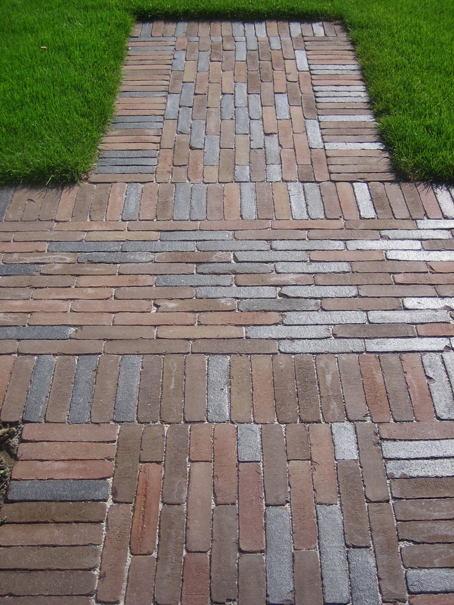 The pavers are laid on edge, always with the sanded side laid against the non-sanded side. Drummed clay pavers are to be laid with the least damaged stretcher side facing upwards.