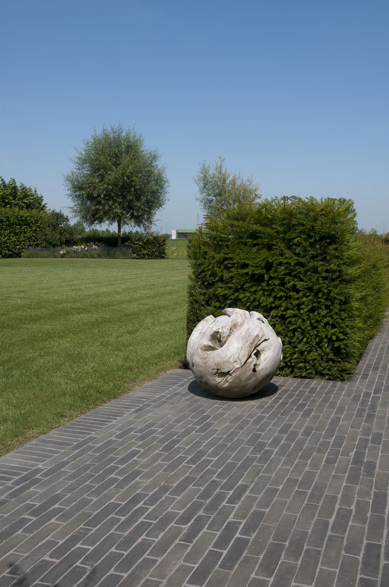 The pavers are laid on edge, always with the sanded side laid against the non-sanded side. Drummed clay pavers are to be laid with the least damaged stretcher side facing upwards.