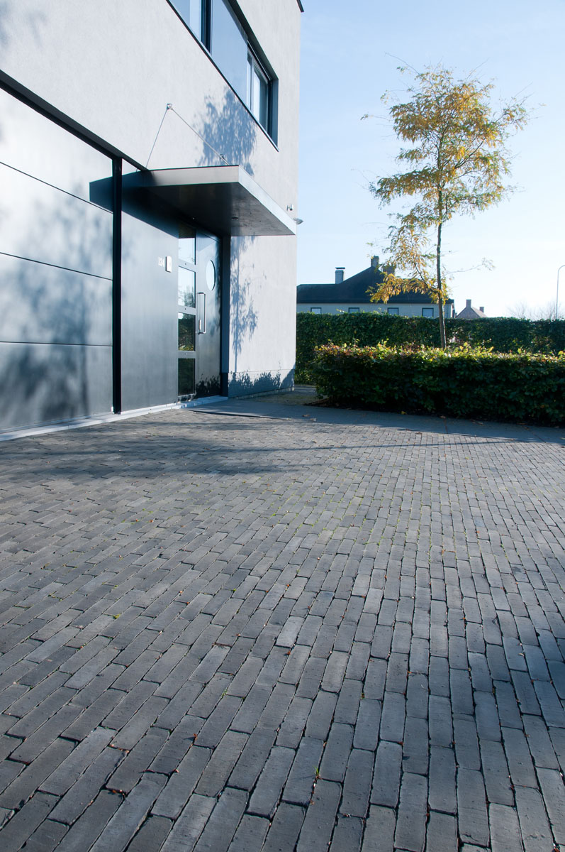 The clay pavers are placed loose against each other with a minimum joint (2 to 3 mm) by means of the click & drop method. By first tapping the pavers together and then lowering them onto the paving layer, the correct joint thickness is automatically achieved and the paving layer remains untouched. If necessary, a slightly wider joint can be used from time to time in order to maintain the bond. Laying the clay pavers so that they are pressed against each other is strongly advised against in order to avoid edge damage.