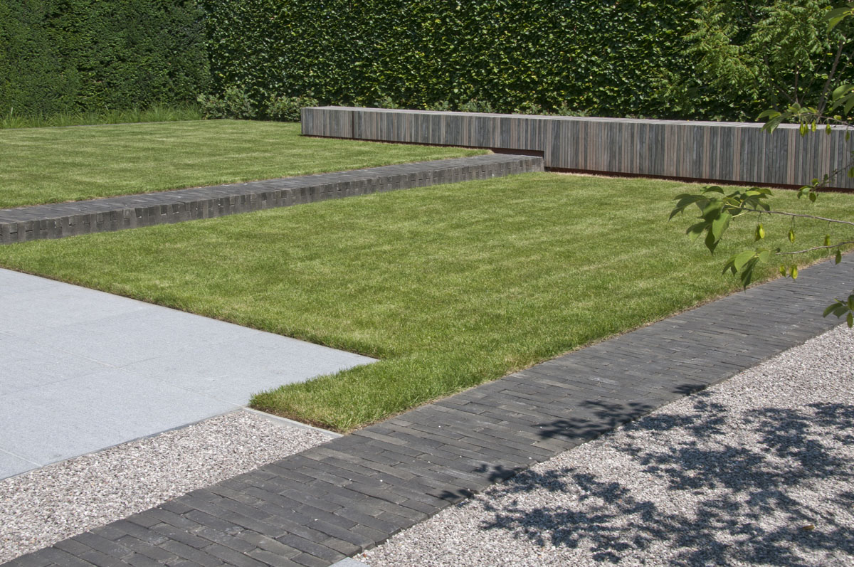 Edging can vary from single kerbstones (a row of clay pavers perpendicular to the bond) supported by sand cement for terraces and footpaths to prefabricated linear concrete elements for driveways and parking areas. Other linear materials can also be used but the edging should always be adequately supported using sand cement.